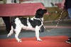 44cm - ensemble proportionnel. Tête bien proportionnée, oreilles bien attachées, excellente encolure et épaule, dos robuste. Angulations de l'arrière marqué. Excellente couleur. Pince légèrement des postérieurs en retour.