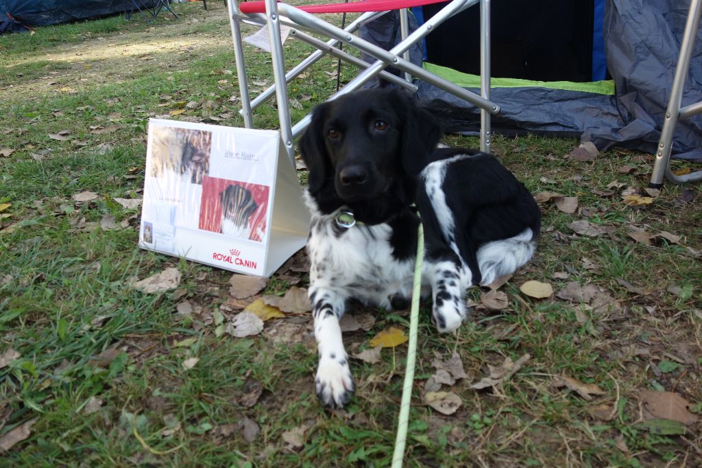 Taille idéale, DCC. Oeil foncé et expressif. Belle encolure, dessus soutenu, excellente poitrine, excellentes angulations. Serre derrière à la marche, mouvements corrects.